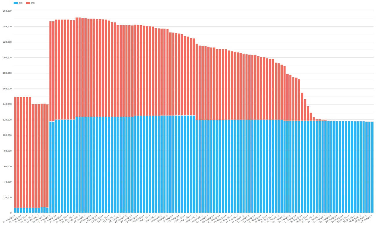 Noting that new trades were 2.0 billion OIS and zero IRS on 17 May (and ignoring any IRS maturing on that date), the above figures would imply: