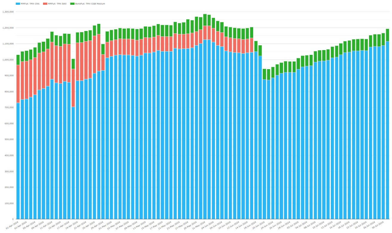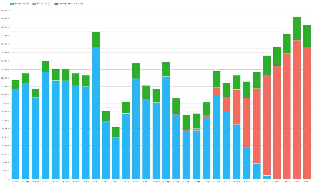 - After being introduced in early 2022, TMX CRA (CORRA) futures took over from TMX BAX (CDOR) futures from Q3 2024, consistent with the June cessation date.
