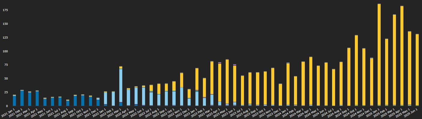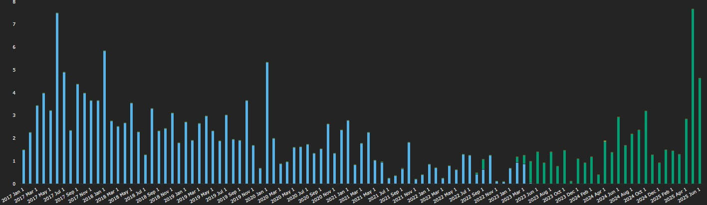 - CAD OIS alone exceeded previous peaks for all CAD cleared IRD in Q4 2024 and Q1 and Q2 2025.