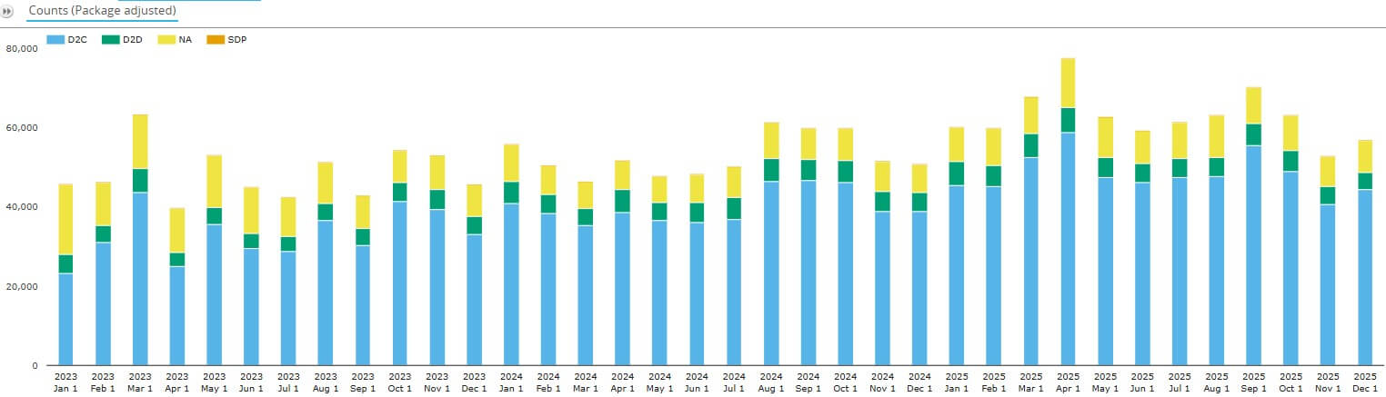 - D2C platforms had 28,300 execution events per month in 2025 – up 50 percent from 18,900 in 2023.