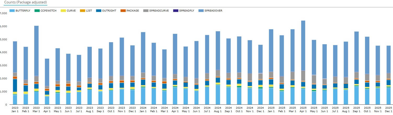 - Curve spreads (SPREADCURVE) averaged 519 execution events per month – up 70 percent from 306 in 2023.
