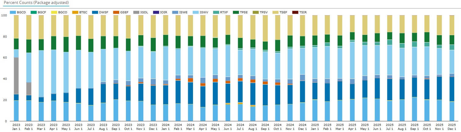 - Remaining packages in aggregate averaged 229 execution events per month – down 30 percent from 329 in 2023.