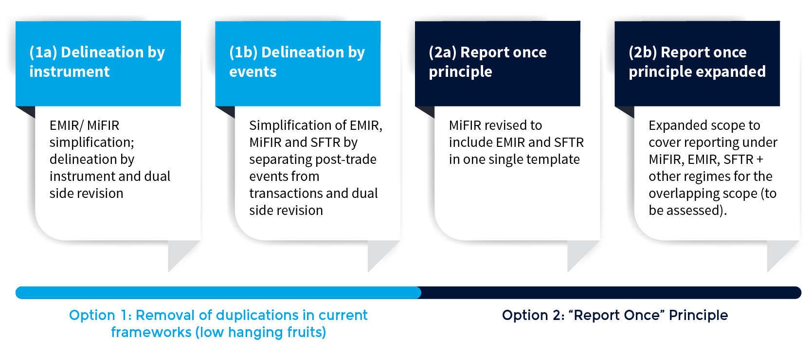 Simplification won’t happen overnight. The implementation of both options could take five to seven years, with the “report-once” model expected to come later. So, the current MiFIR, EMIR, and SFTR regimes are likely to stay in place for a while.