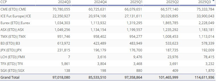 Clearinghouses published in December their latest CPMI-IOSCO Quantitative Disclosures for Q3 2025.