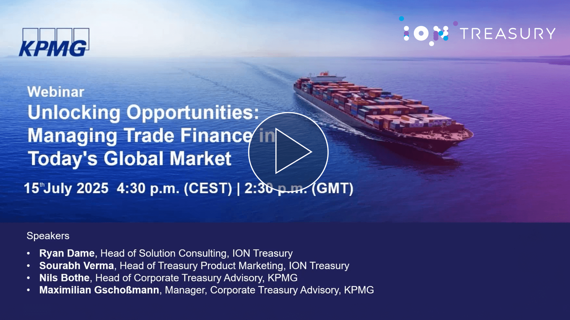 Gain a comprehensive understanding of current challenges and technological developments, changing how businesses finance and secure international trade. Our expert panellists from KPMG and ION Treasury discuss trade finance in today’s global market, focusing on the current challenges and technological developments within international trade financing. They introduce basic concepts before moving on to more advanced topics, and share their personal experience in the digitalization and automation of related processes.